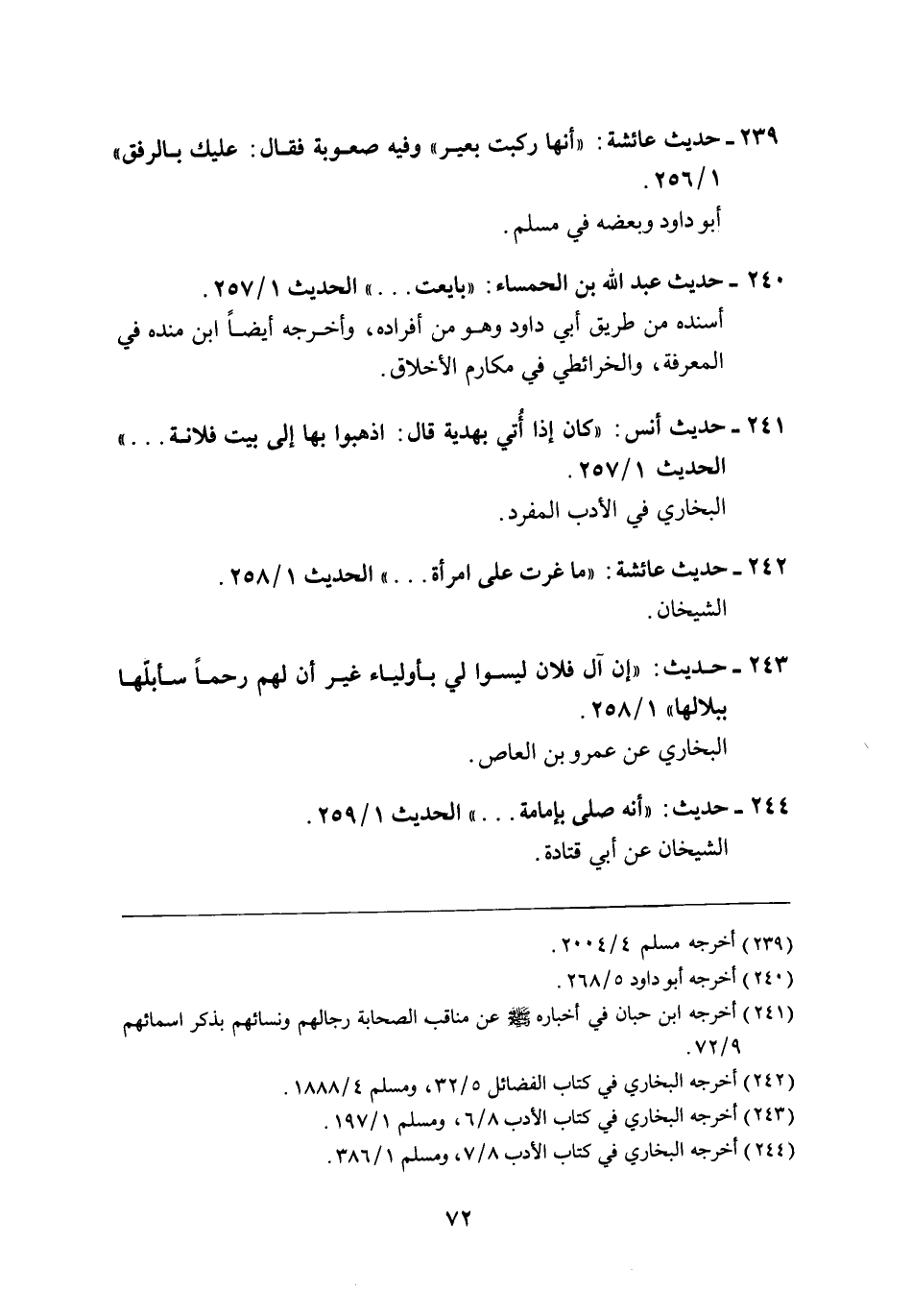 239 - حديث عائشة: "أنها ركبت بعير" وفيه صعوبة فقال: عليك بالرفق" 1/ 256.