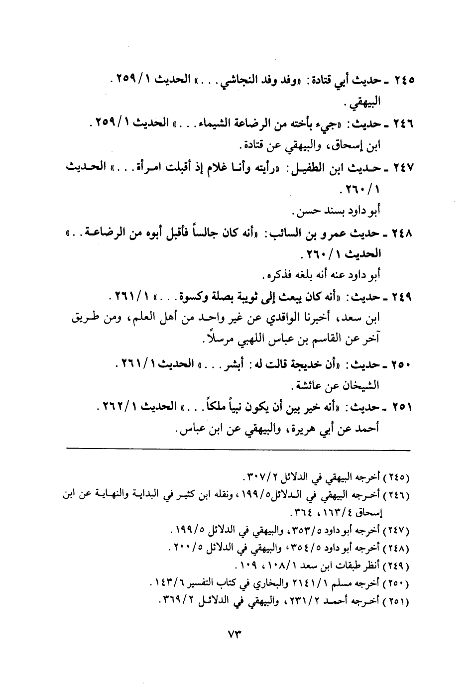 246 - حديث: "جيء بأخته من الرضاعة الشيماء ... " الحديث 1/ 259.