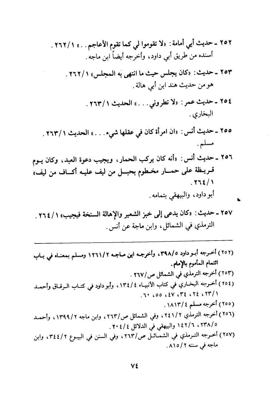 257 - حديث: "كان يدعى إلى خبز الشعير والِإهالة السنخة فيجيب" 1/ 264.