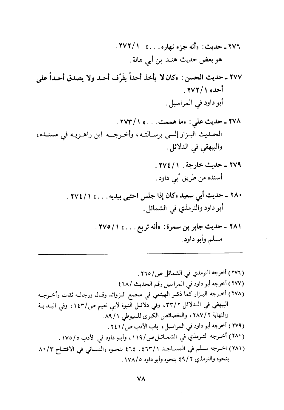 280 - حديث أبي سعيد "كان إذا جلس احتبى بيديه ... " 1/ 274.