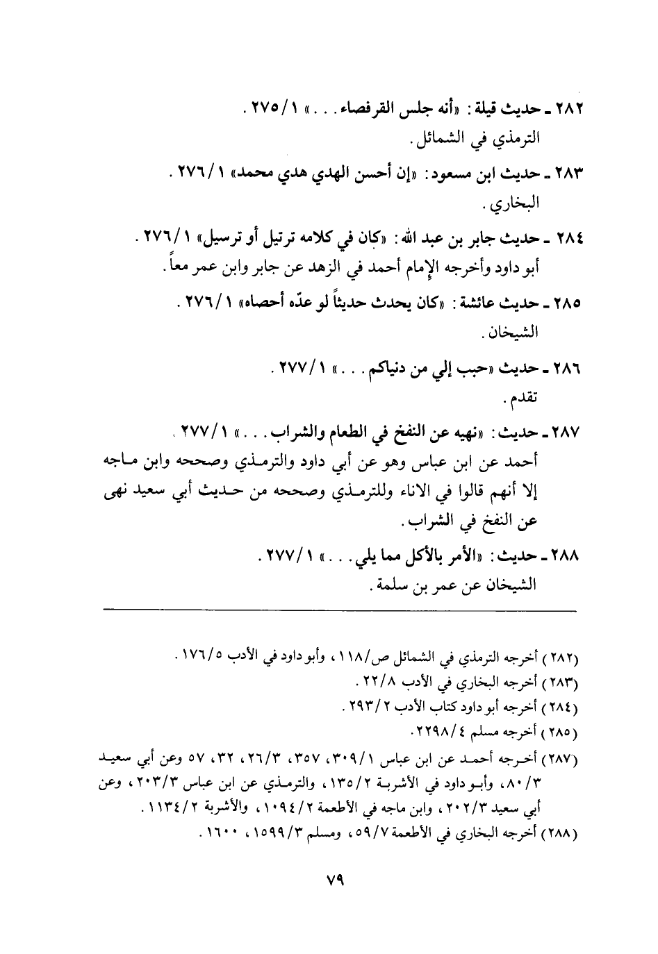 288 - حديث: "الأمر بالأكل مما يلي ... " 1/ 277.