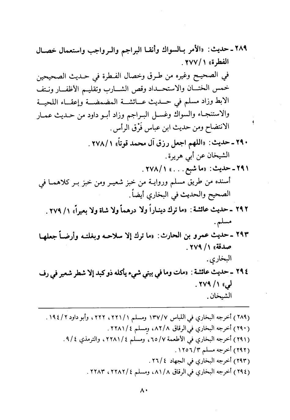 290 - حديث: " اللهم اجعل رزق آل محمد قوتًا" 1/ 278.