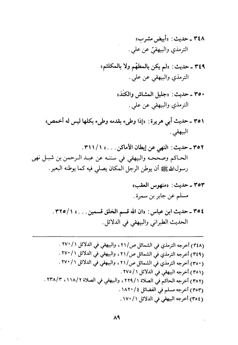 (348) أخرجه الترمذي في الشمائل ص/ 21، والبيهقي في الدلائل 1/ 270.