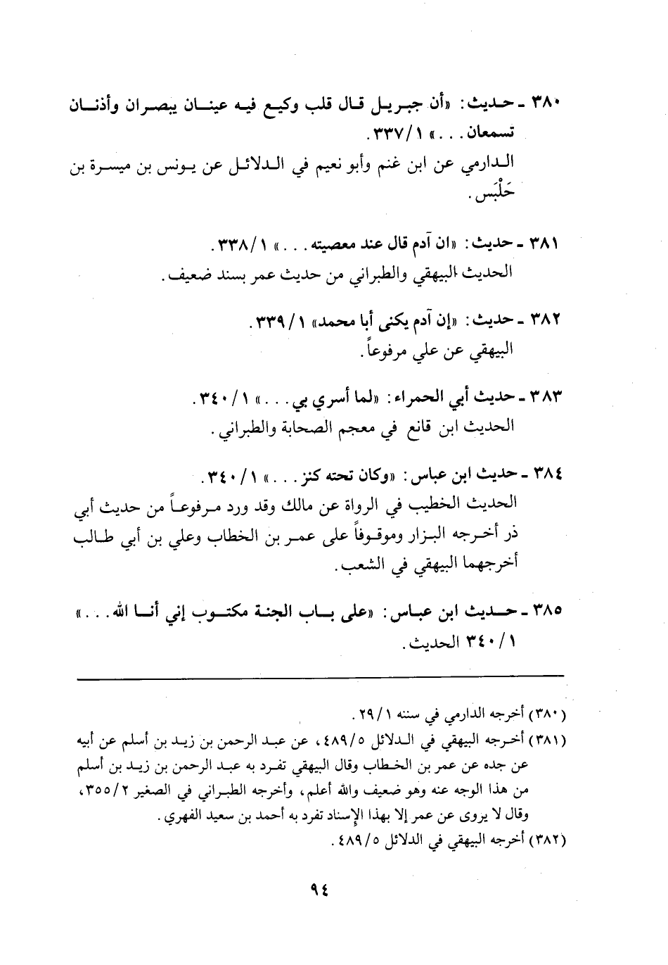 380 - حديث: "أن جبريل قال قلب وكيع فيه عينان يبصران وأذنان تسمعان ... " 1/ 337.