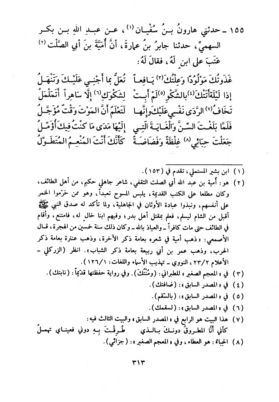155 - حَدَّثَنِي هَارُونُ بْنُ سُفْيَانَ، عَنْ عَبْدِ اللَّهِ بْنِ بَكْرٍ السَّهْمِيِّ، حَدَّثَنَا جَابِرُ بْنُ عُمَارَةَ، أَنَّ أُمَيَّةَ بْنَ أَبِي الصَّلْتِ عَتَبَ عَلَى ابْنٍ لَهُ فَقَالَ لَهُ: