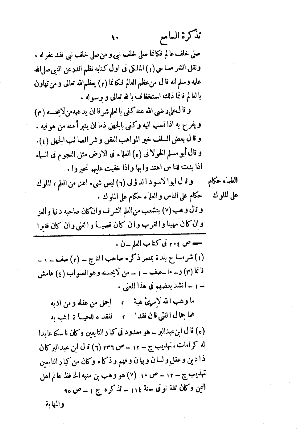 ونقل الشرمساحي المالكي في أول كتابه نظم الدر عن النبي - صلى الله عليه وسلم - أنه قال: من عظم العالم فكأنما يعظم الله تعالى ومن تهاون بالعالم فإنما ذلك استخفاف بالله تعالى وبرسوله.