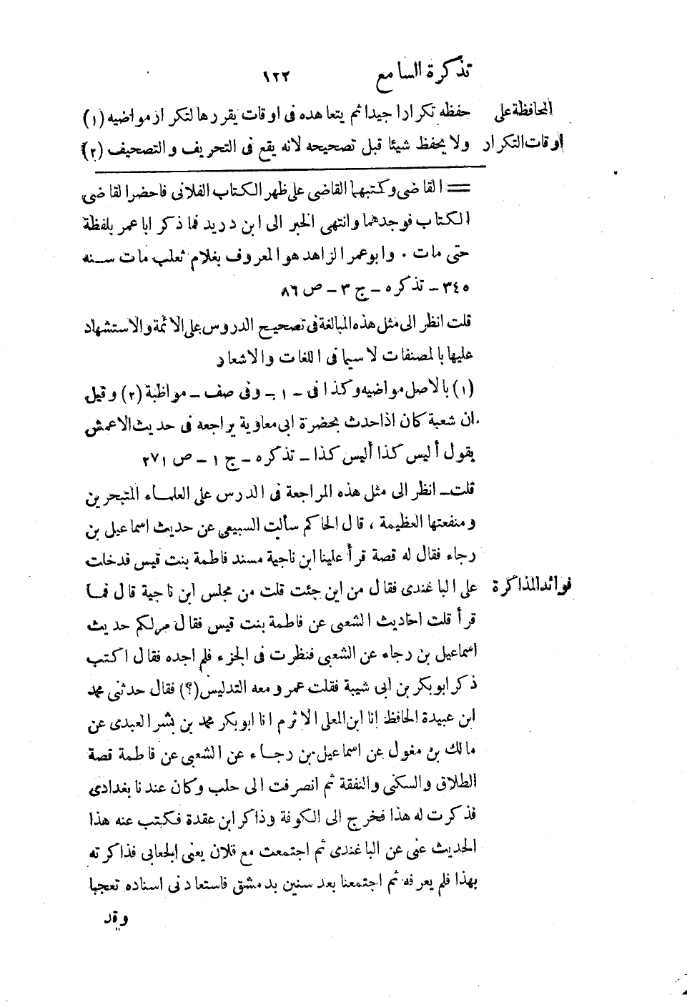 حفظه تكرارًا جيدًا، ثم يتعاهده في أوقات يقررها لتكرار مواضيه، ولا يحفظ شيئًا قبل تصحيحه لأنه يقع في التحريف والتصحيف،