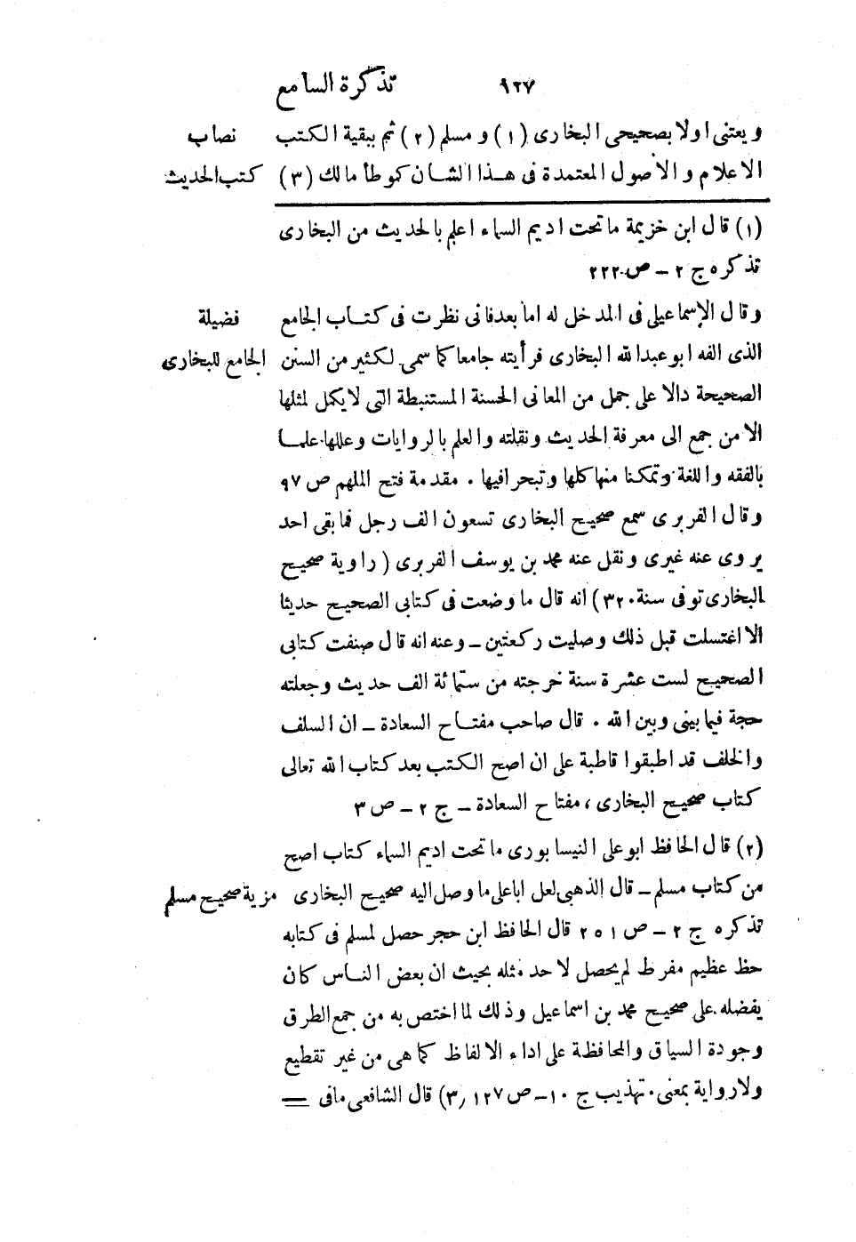 ويعتني أولاً بصحيحي البخاري ومسلم، ثم ببقية الكتب الأعلام والأصول المعتمدة في هذا الشأن كموطأ مالك