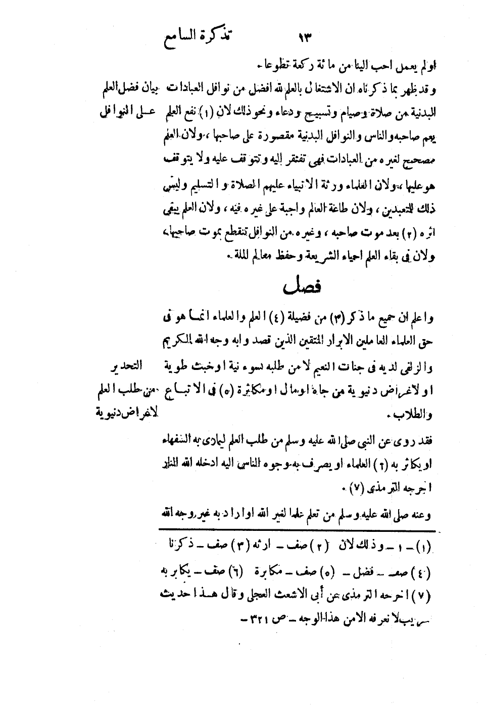 واعلم أن جميع ما ذُكِرَ من فضيلة العلم والعلماء إنما هو في حق العلماء العاملين الأبرار المتقين الذين قصدوا به وجه الله الكريم، والزلفى لديه في جنات النعيم، لا من طلبه بسوء نية أو خبث طوية أو لأغراض دنيوية من جاه أو مال أو مكاثرة في الأتباع والطلاب.