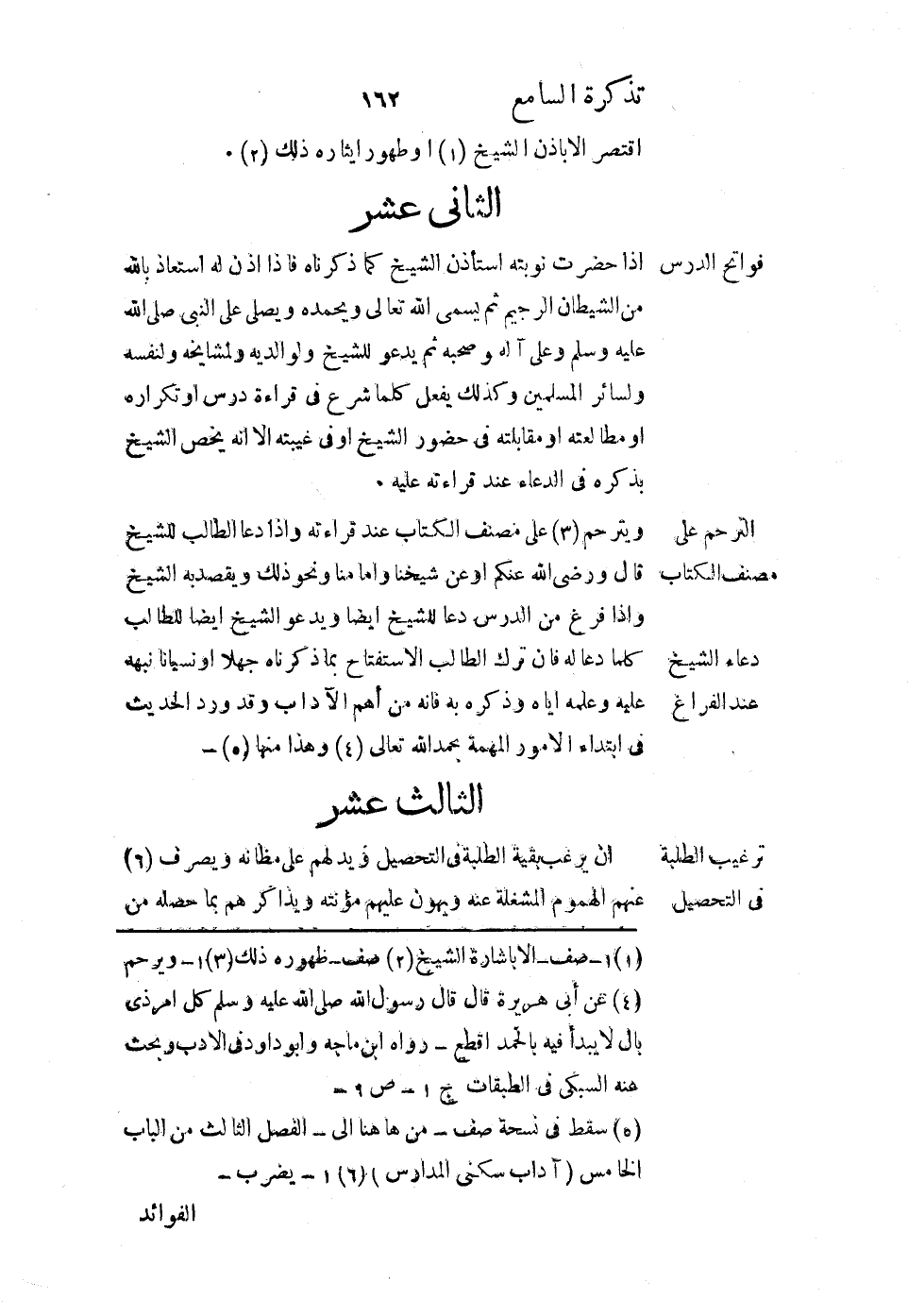 ويترحم على مصنف الكتاب عند قراءته، وإذا دعا الطالب للشيخ قال: ورضي الله عنكم أو عن شيخنا وإمامنا ونحو ذلك، ويقصد به الشيخ، وإذا فرغ من الدرس دعا للشيخ أيضًا، ويدعو الشيخ أيضًا للطالب كلما دعا له، فإن ترك الطالب الاستفتاح بما ذكرناه جهلاً أو نسيانًا نبهه عليه وعلمه إياه وذكره به، فإنه من أهم الآداب، وقد ورد الحديث في ابتداء الأمور المهمة بحمد الله تعالى، وهذا منها.