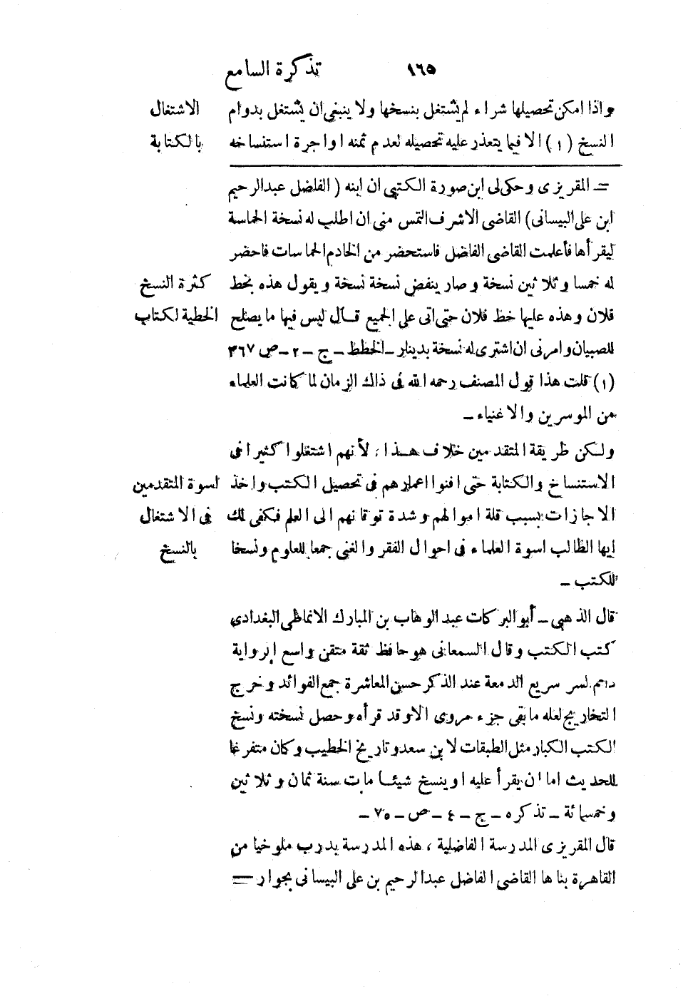 وإذا أمكن تحصيلها شراء لم يشتغل بنسخها، ولا ينبغي أن يشتغل بدوام النسخ إلا فيما يتعذر عليه تحصيله لعدم ثمنه أو أجرة استنساخه،