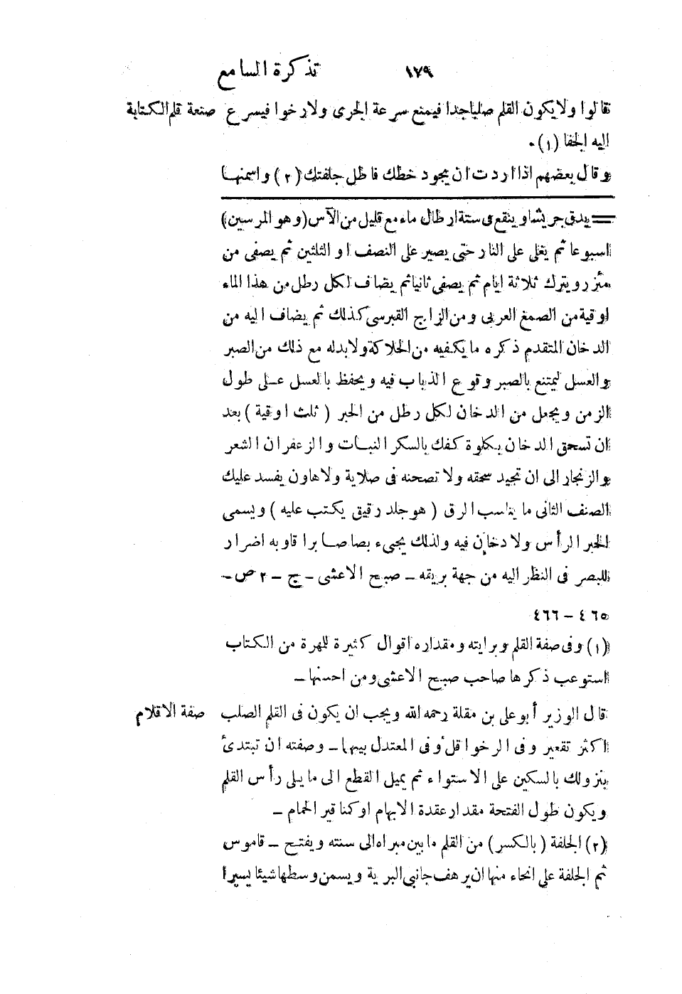 قالوا: ولا يكون القلم صلبًا جدًا فيمنع سرعة الجري ولا رخوًا فيسرع إليه الجفا.
