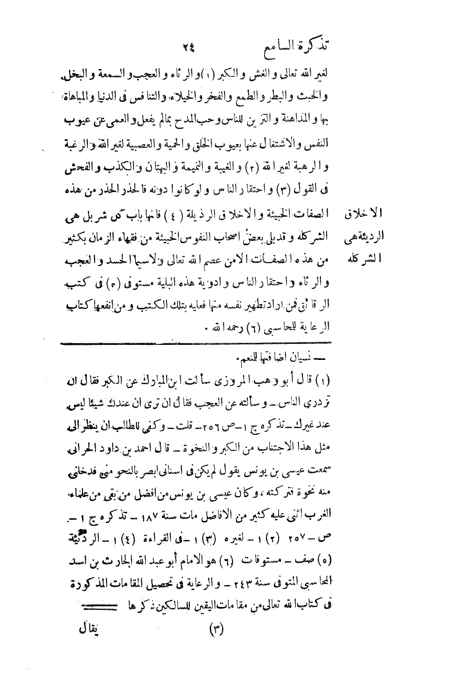وقد بُليَ بعض أصحاب النفوس الخبيثة من فقهاء الزمان بكثير من هذه الصفات إلا من عصم الله تعالى ولاسيما الحسد والعجب والرئاء واحتقار الناس وأدوية هذه البلية مستوفى في كتب الرقائق فمن أراد تطهير نفسه منها فعليه بتلك الكتب ومن أنفعها كتاب الرعاية للمحاسبي رحمه الله.