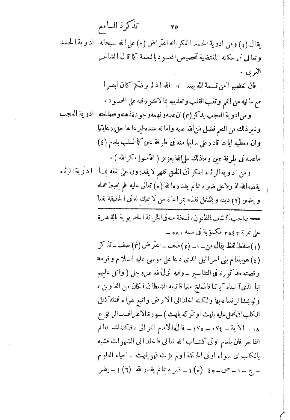 ومن أدوية العجب يذكر أن علمه وفهمه وجودة ذهنه وفصاحته وغير ذلك من النعم فضل من الله عليه وأمانة عنده ليرعاها حق رعايتها، وأن مُعْطِيه إياها قادر على سلبها منه في طرفة عين كما سلب بلعام ما علمه في طرفة عين وما ذلك على الله بعزيز {أَفَأَمِنُوا مَكْرَ اللَّهِ} [الأعراف: ٩٩].