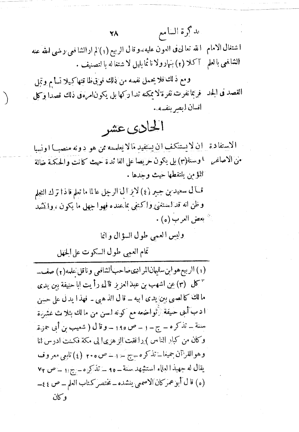 أن لا يستنكف أن يستفيد ما لا يعلمه ممن هو دونه منصبًا أو نسبًا أو سنًا، بل يكون حريصًا على الفائدة حيث كانت والحكمة ضالة المؤمن يلتقطها حيث وجدها.