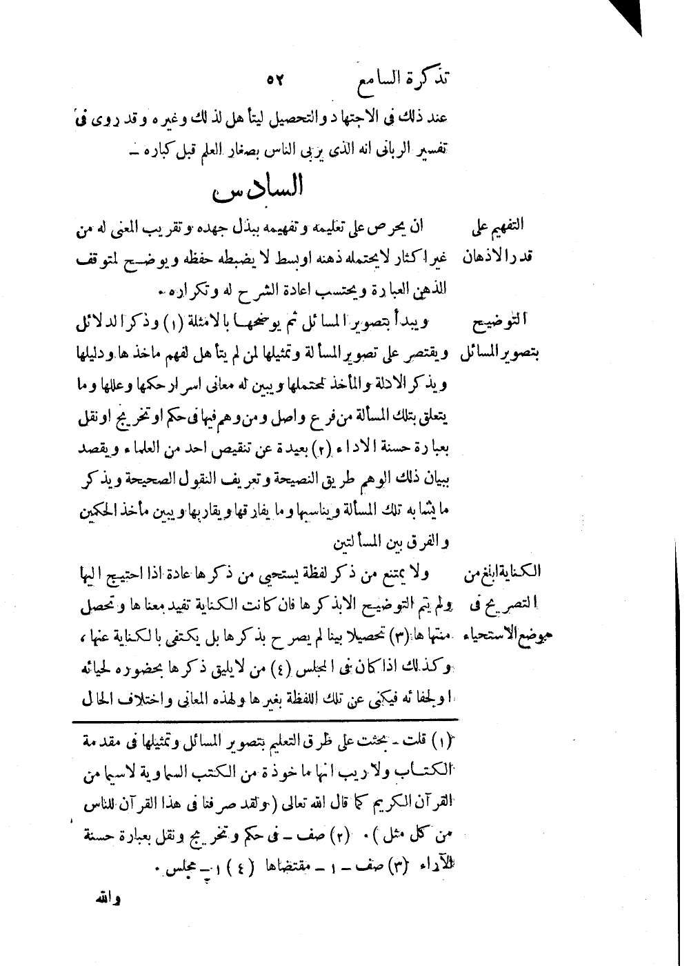 أن يحرص على تعليمه وتفهيمه ببذل جهده وتقريب المعنى له من غير إكثار لا يحتمله ذهنه أو بسط لا يضبطه حفظه ويوضح لمتوقف الذهن العبارة ويحتسب إعادة الشرح له وتكراره.