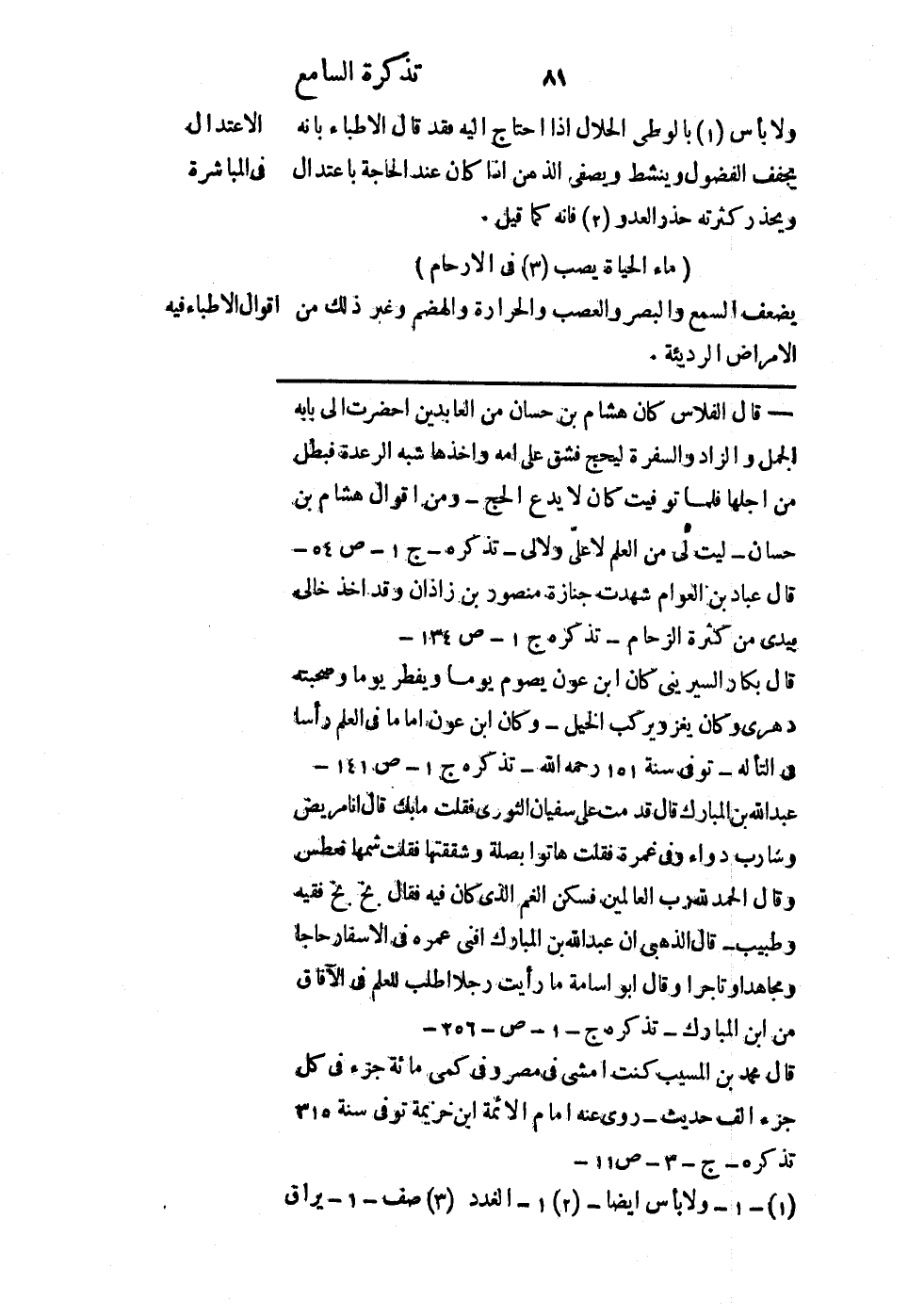 ولا بأس بالوطى الحلال إذا احتاج إليه، فقد قال الأطباء بأنه يجفف الفضول وينشط ويصفي الذهن إذا كان عند الحاجة باعتدال، ويحذر كثرته حذر العدو فإنه كما قيل: (ماء الحياة يصب في الأرحام) يضعف السمع والبصر والعصب والحرارة والهضم وغير ذلك من الأمراض الرديئة.