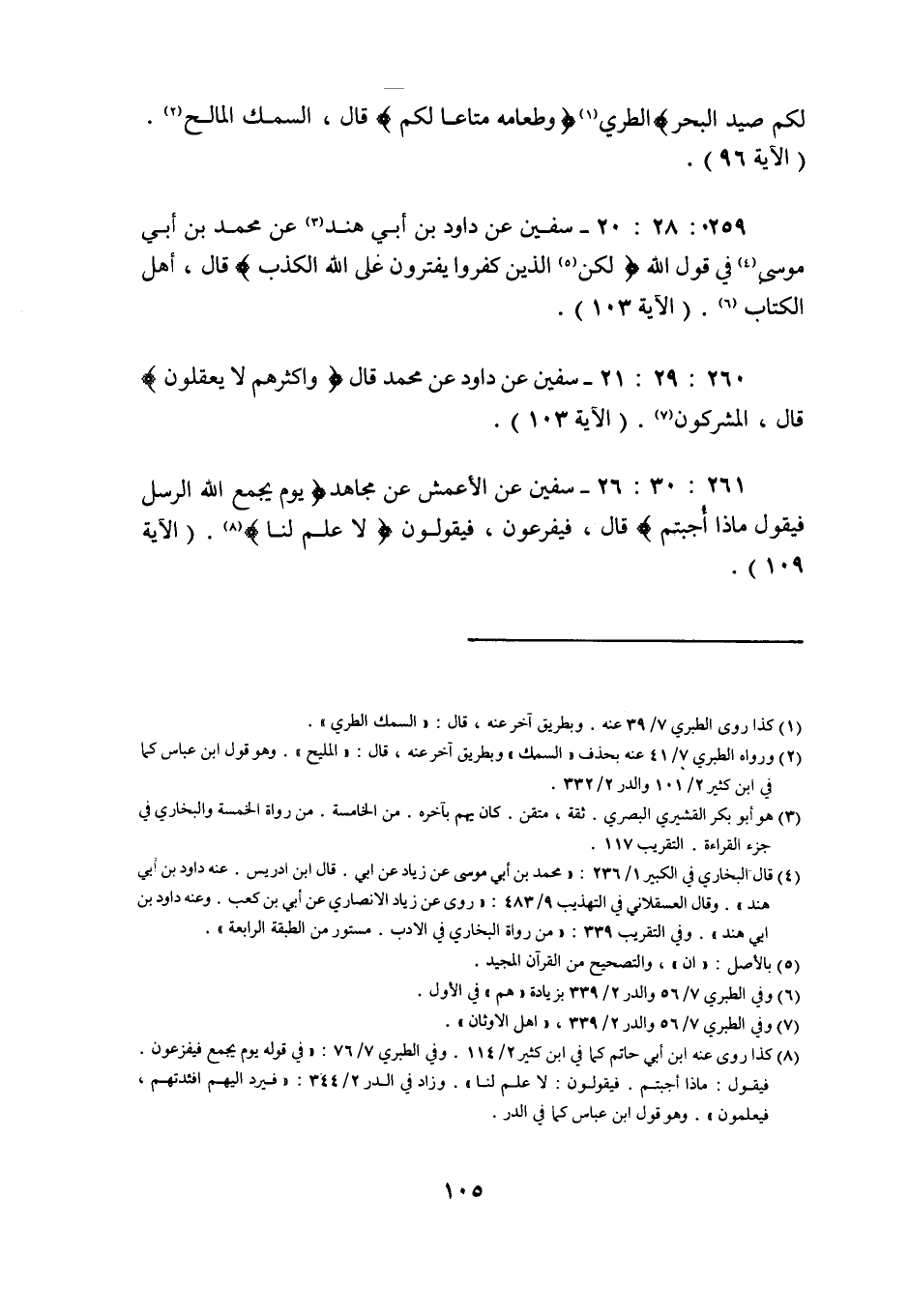 260: 29: 21 سفيان عَنْ دَاوُدَ عَنْ مُحَمَّدٍ قَالَ واكثرهم لا يعقلون قال المشركون (الآية 103) .