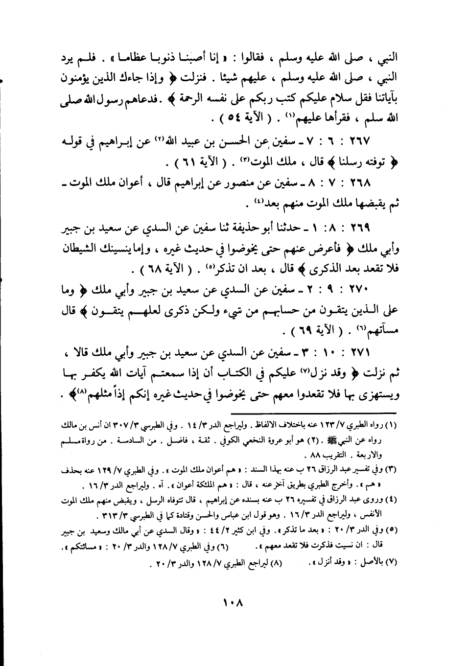 270: 9: 2 سُفْيَانُ عَنِ السُّدِّيِّ عَنْ سَعِيدِ بْنِ جُبَيْرٍ وَأَبِي مُلْكٍ وَمَا عَلَى الَّذِينَ يَتَّقُونَ مِنْ حِسَابِهِمْ من شئ ولكن ذكرى لعلهم يتقون قال مسآتهم لم (الآية 69) .