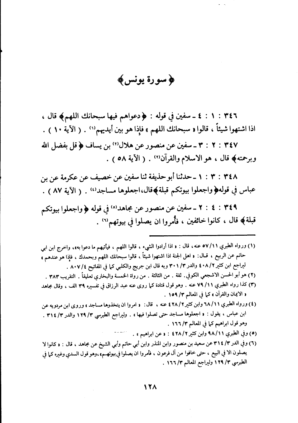 347: 2: 3 سفيان عَنْ مَنْصُورٍ عَنْ هِلَالِ بْنِ يساف بفضل الله وبرحمته قال هو الاسلام والقرآن (الآية 58) .