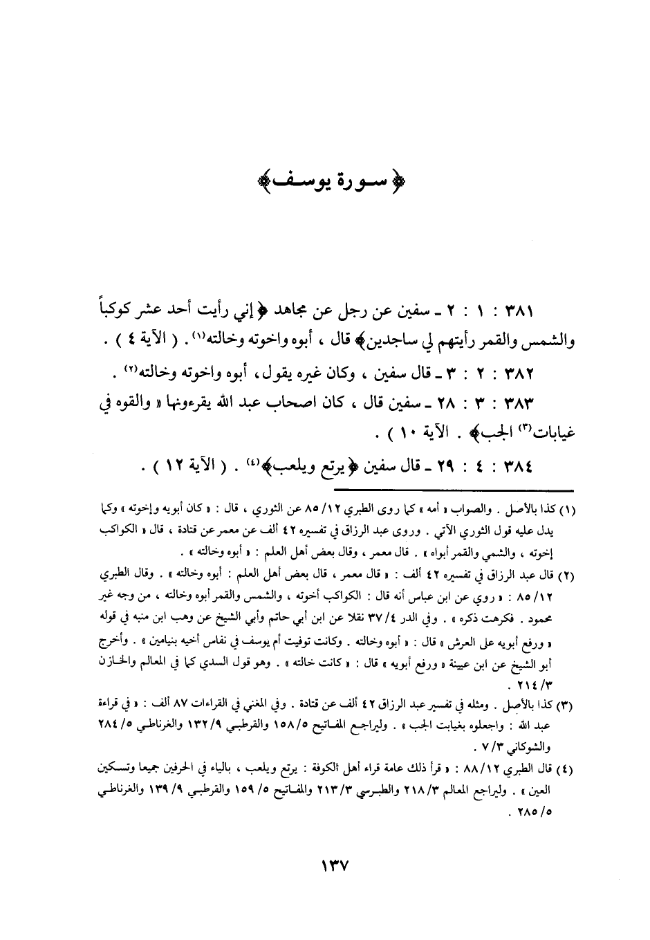 384: 4: 29 قال سفيان ويلعب (الآية 12) .