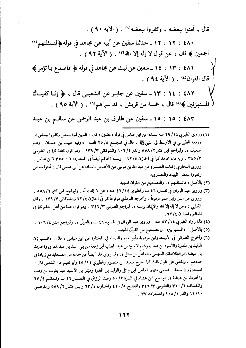 482: 14: 13 سفيان عَنْ جَابِرٍ عَنِ الشَّعْبِيِّ قَالَ كفيناك المستهزئين قَالَ خَمْسَةً مِنْ قُرَيْشٍ قَدْ سماهم (الآية 95) .