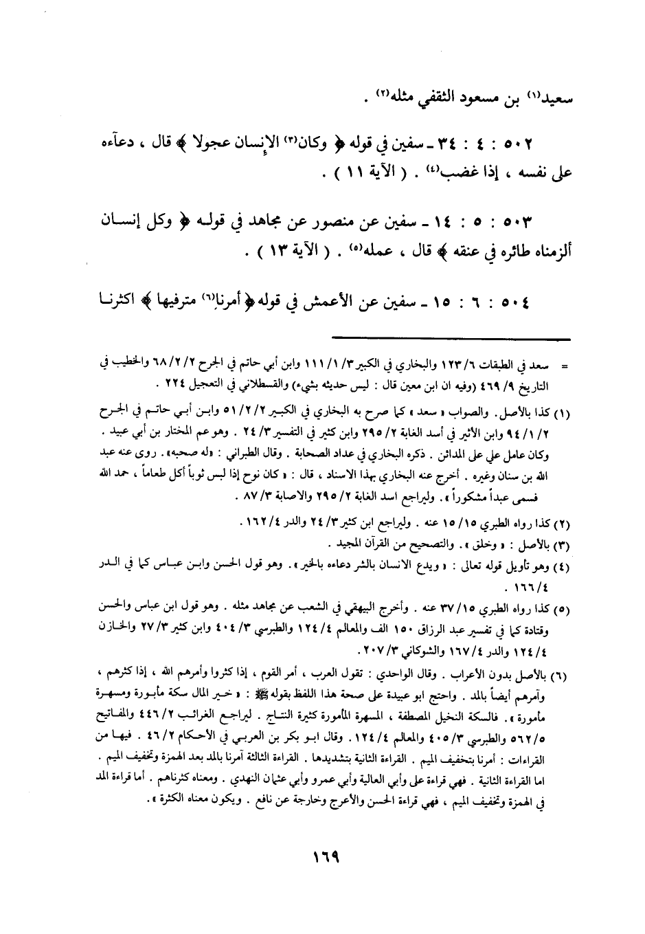 سَعِيدِ بْنِ مَسْعُودٍ الثَّقَفِيِّ مِثْلِهِ 502: 4: 34 سفيان فِي قَوْلِهِ وَكَانَ الإِنْسَانُ عَجُولا قال دعاءه