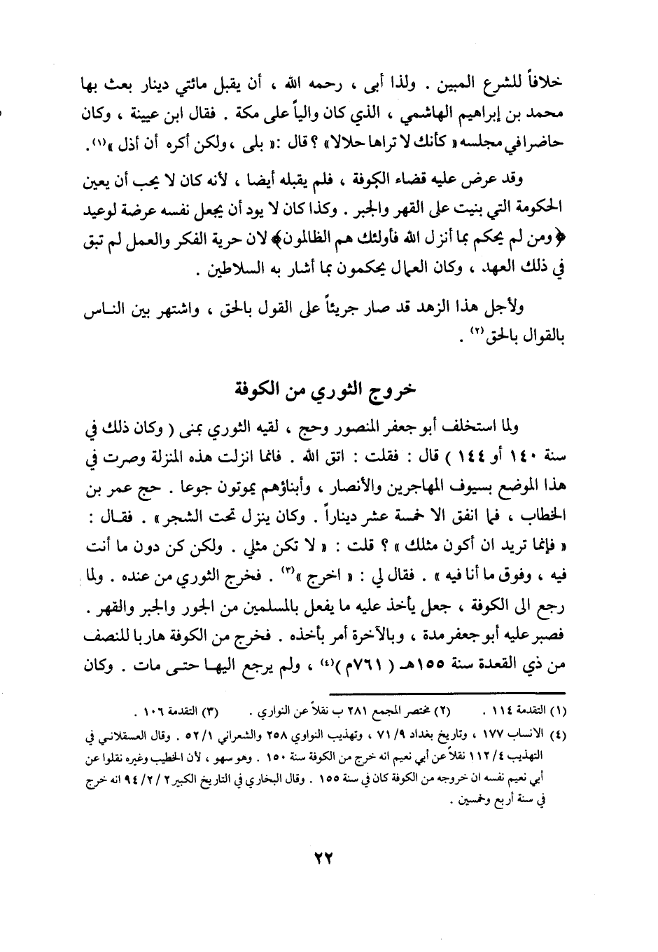 فخرج من الكوفة هاربا للنصف من ذى القعدة سنة 155 هـ (761 م) ولم يرجع إليها حتى مات.