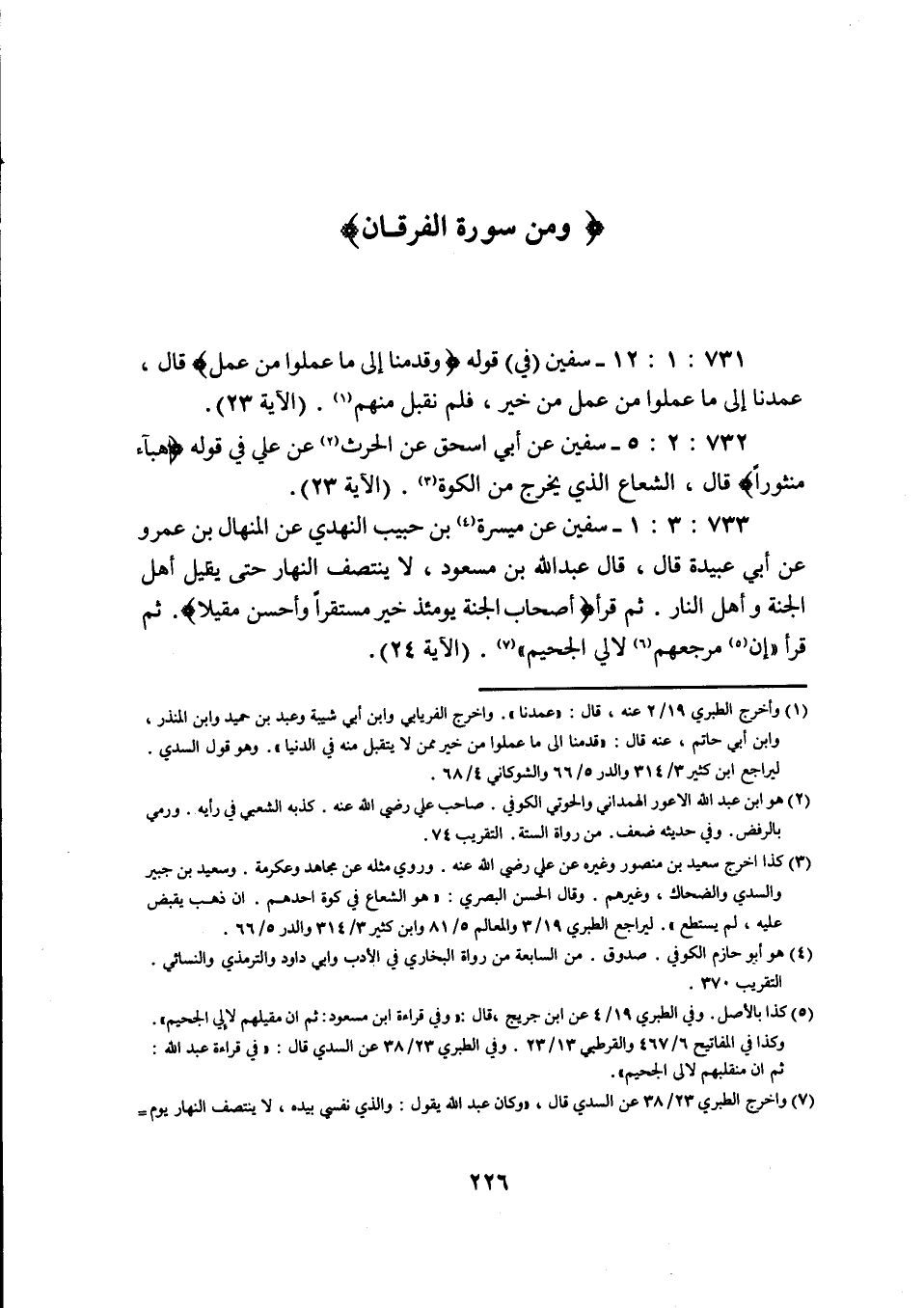 731: 1: 12 سفيان فِي قَوْلِهِ وَقَدِمْنَا إِلَى مَا عملوا من عمل قَالَ عَمِدْنَا إِلَى مَا عَمِلُوا مِنْ عَمَلٍ مِنْ خَيْرٍ فَلَمْ نقبل منهم (الآية 23) .