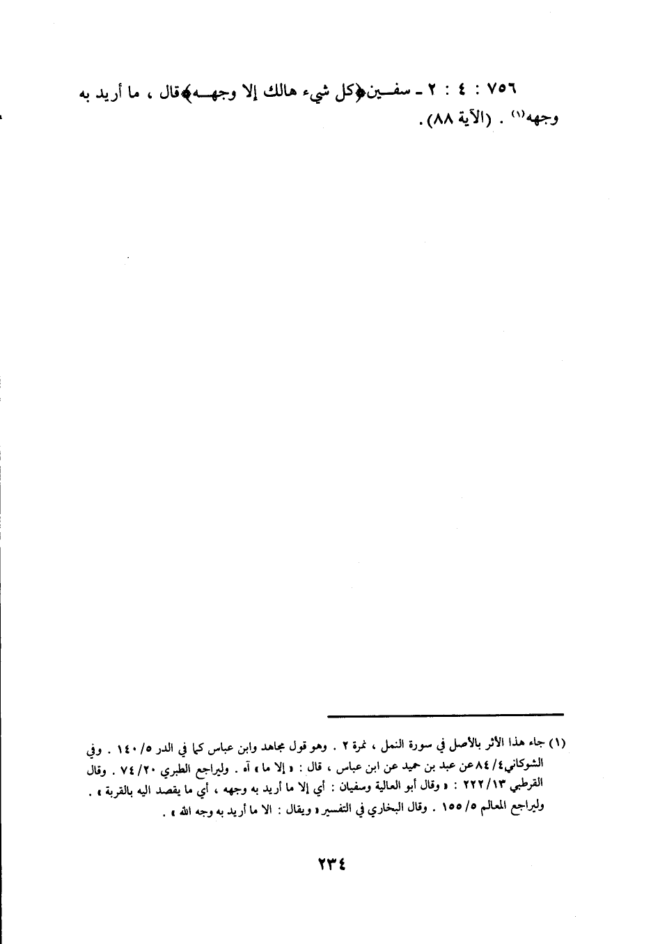 756: 4: 2 سفيان شئ هالك إلا وجهه قَالَ مَا أُرِيدَ بِهِ وَجْهُهُ (الآية 88) .
