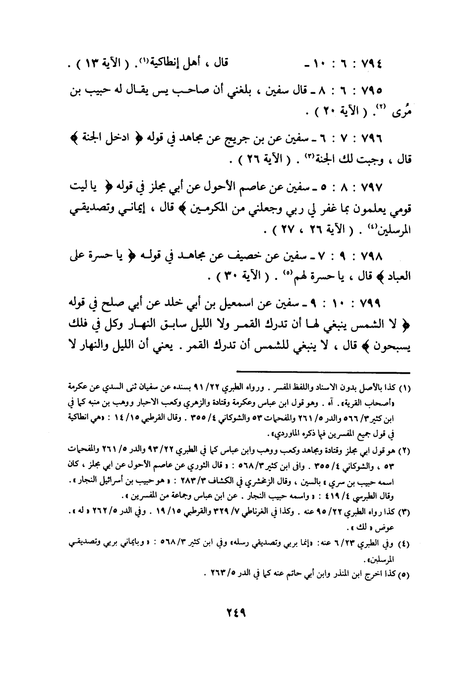 795: 6: 8 قال سفيان بَلَغَنِي أَنَّ صَاحِبَ يس يُقَالُ له حبيب بن مرى (الآية 20) .