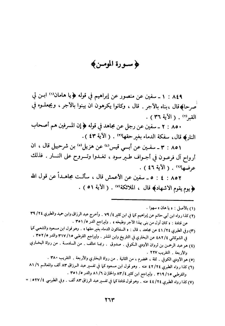852: 4: 5 سفيان عَنِ الْأَعْمَشِ قَالَ سَأَلْتُ مُجَاهِدًا عن قول الله يوم يقوم الاشهاد قال الملائكة (الآية 51) .