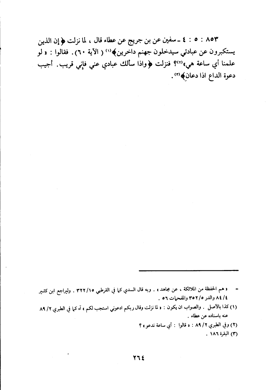 853: 5: 4 سفيان عن بن جُرَيْجٍ عَنْ عَطَاءٍ قَالَ لَمَّا نَزَلَتْ إِنَّ الَّذِينَ يَسْتَكْبِرُونَ عَنْ عبادتي سيدخلون جهنم داخرين الآية 60 فَقَالُوا لَوْ عَلِمْنَا أَيَّ سَاعَةٍ هِيَ فَنَزَلَتْ وَإِذَا سَأَلَكَ عِبَادِي عَنِّي فَإِنِّي قَرِيبٌ أُجِيبُ دَعْوَةَ الداع إذا دعان
