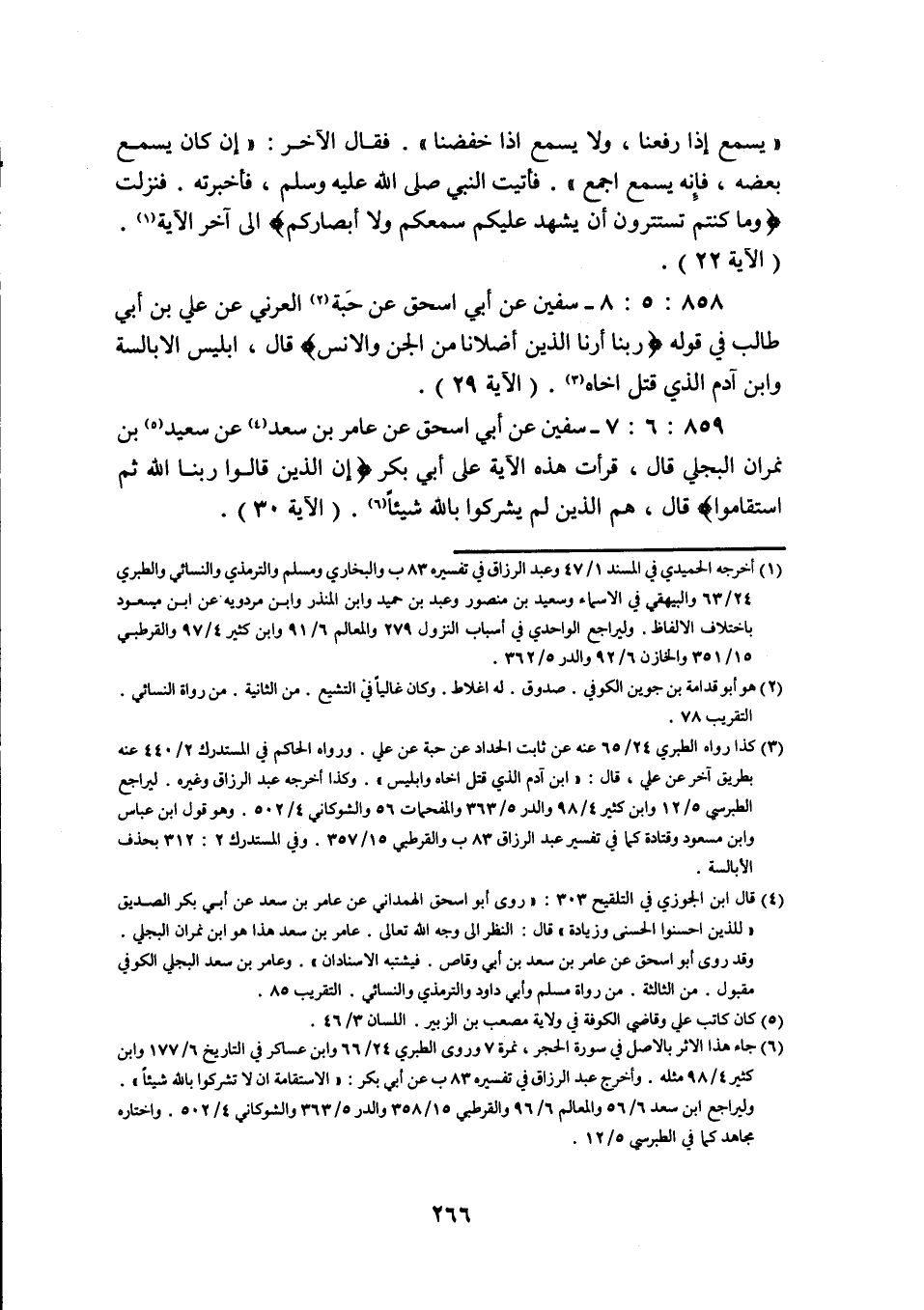 859: 6: 7 سفيان عن أبي اسحق عَنْ عَامِرِ بْنِ سَعْدٍ عَنْ سَعِيدِ بْنِ نِمَرانَ الْبَجَلِيِّ قَالَ قرأت هده الْآيَةَ عَلَى أَبِي بَكْرٍ إِنَّ الَّذِينَ قَالُوا رَبُّنَا اللَّهُ ثُمَّ استقاموا قَالَ هُمُ الَّذِينَ لَمْ يُشْرِكُوا بالله شيئا (الآية 30) .
