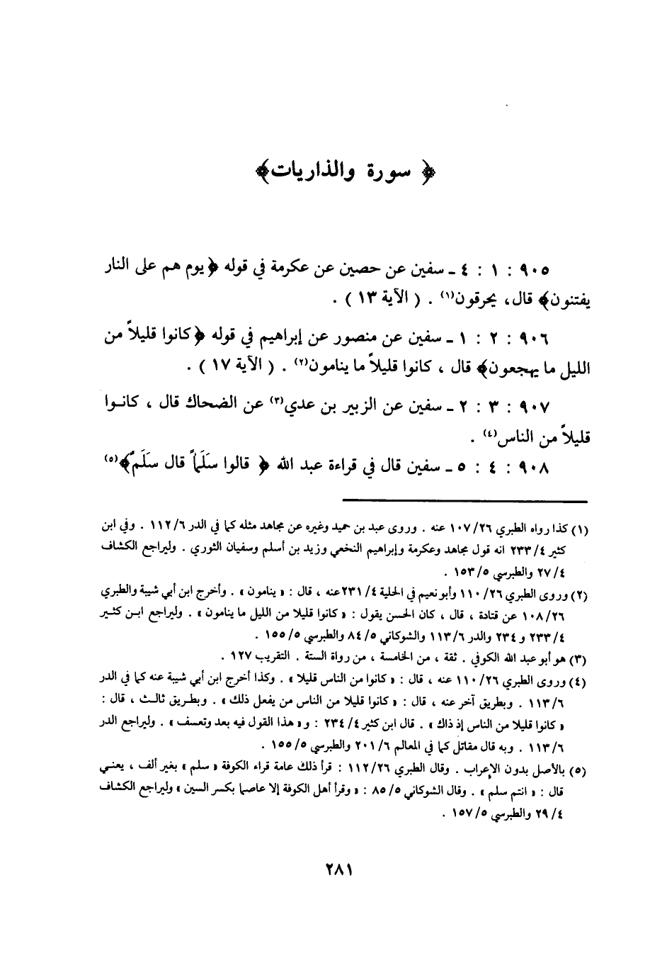 906: 2: 1 سُفْيَانُ عَنْ مَنْصُورٍ عَنْ إِبْرَاهِيمَ فِي قَوْلِهِ كَانُوا قَلِيلا مِنَ الليل ما يهجعون قَالَ كَانُوا قَلِيلًا مَا يَنَامُونَ (الآية 17) .