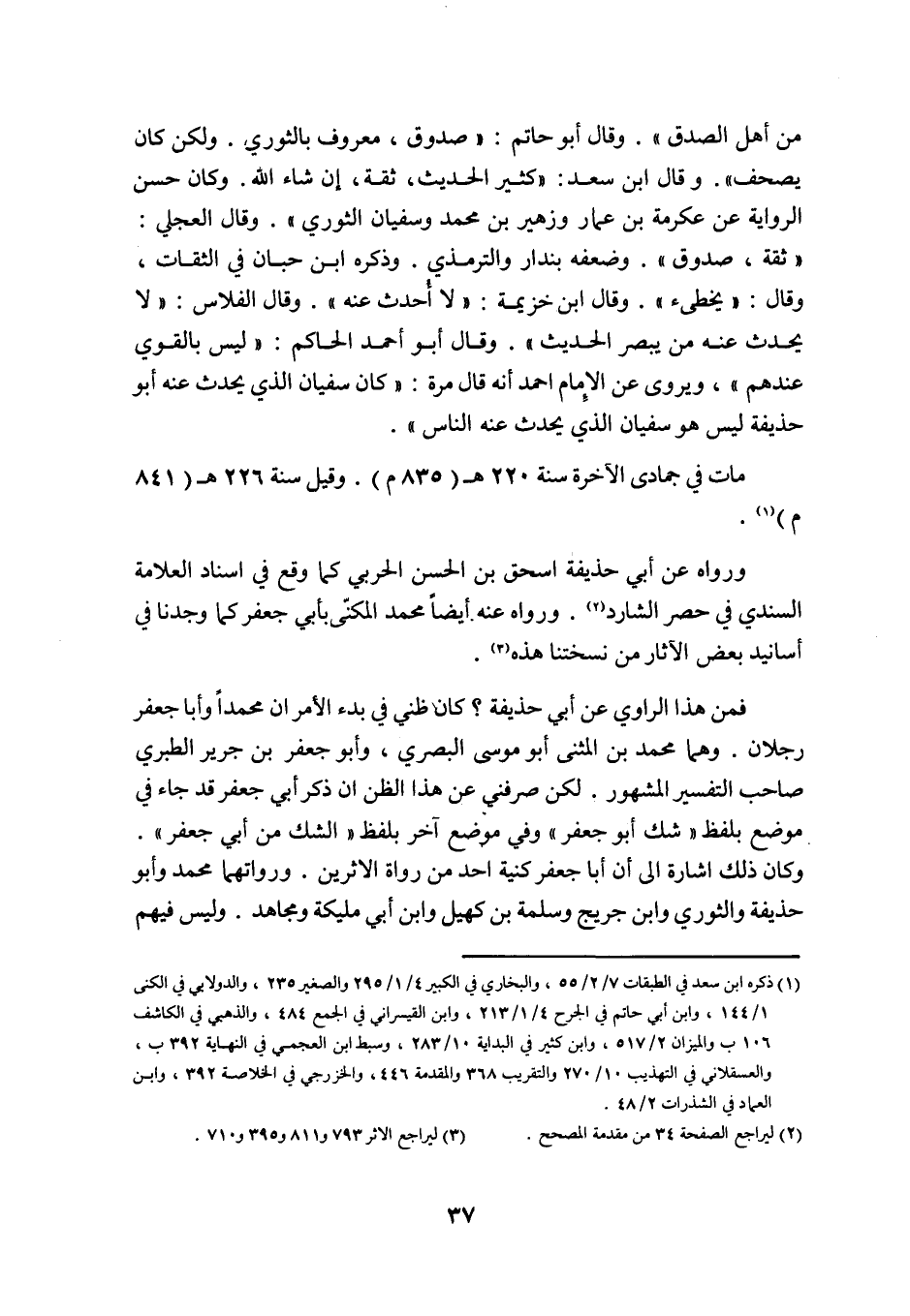 فمن هذا الراوى عن أبى حذيفة؟ كان ظنى قى بدء الامر ان محمدا وأبا جعفر رجلان.