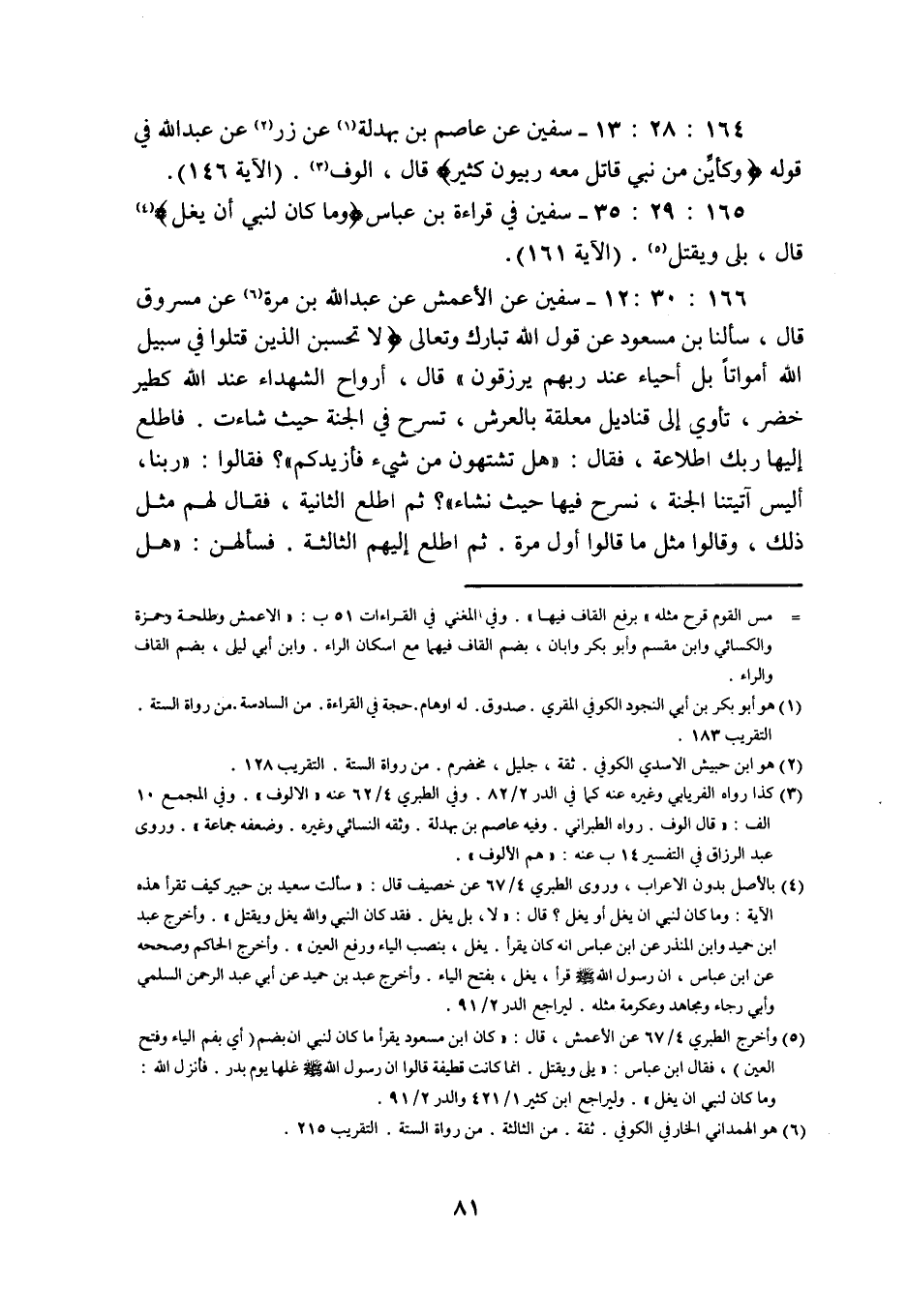165: 29: 35 سفيان في قراءة بن عباس وما كان النبي أن يغل قال بلى ويقتل (الآية 161) .