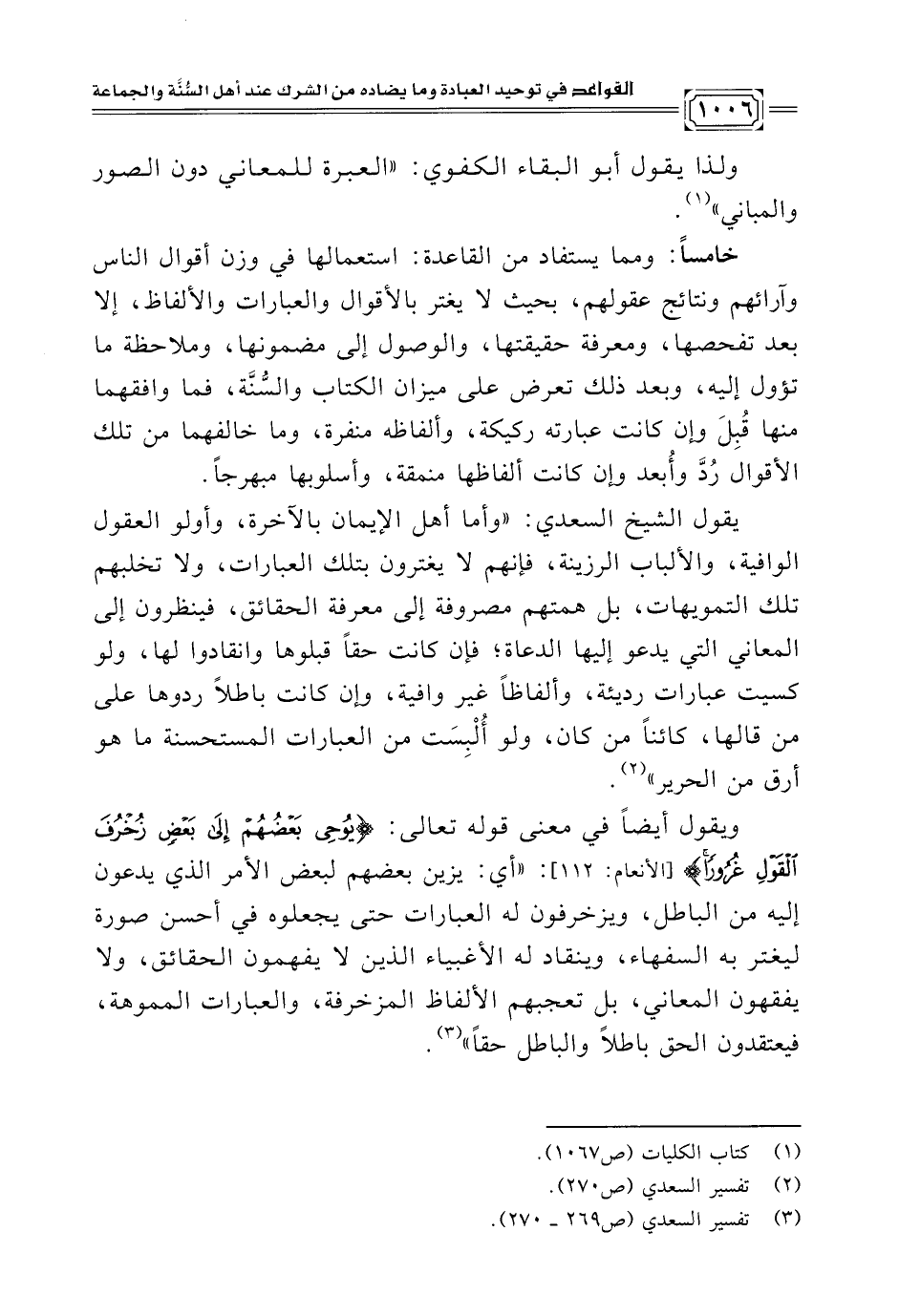 (¬٢) تفسير السعدي (ص ٢٧٠).