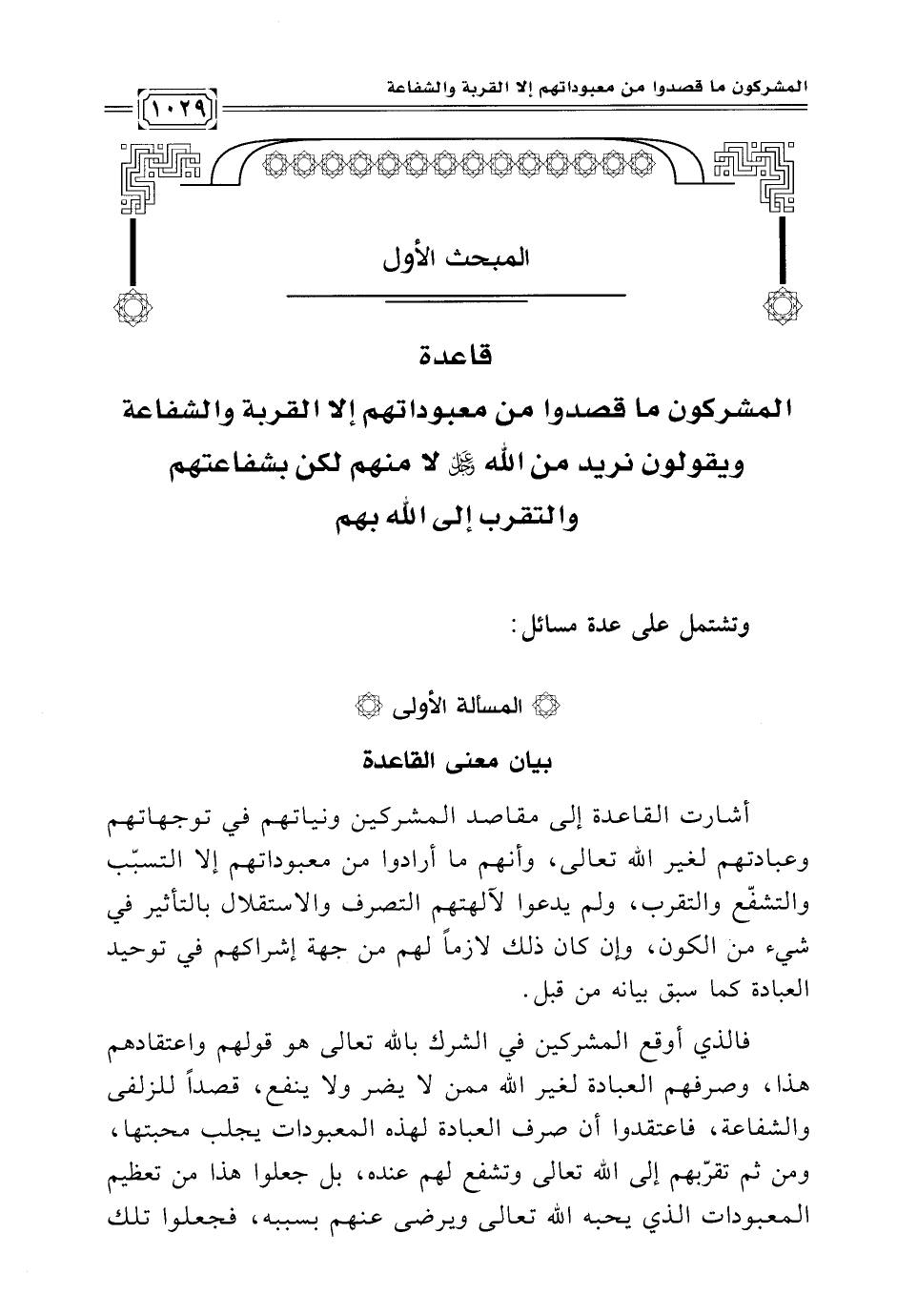 قاعدة المشركون ما قصدوا من معبوداتهم إلا القربة والشفاعة ويقولون نريد من الله عز وجل لا منهم لكن بشفاعتهم والتقرب إلى الله بهم