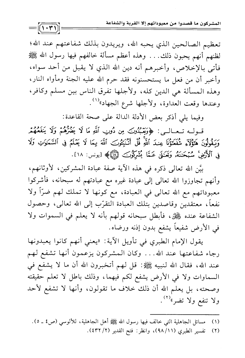 (¬١) مسائل الجاهلية التي خالف فيها رسول الله -صلى الله عليه وسلم- أهل الجاهلية، للألوسي (ص ٤ - ٥).