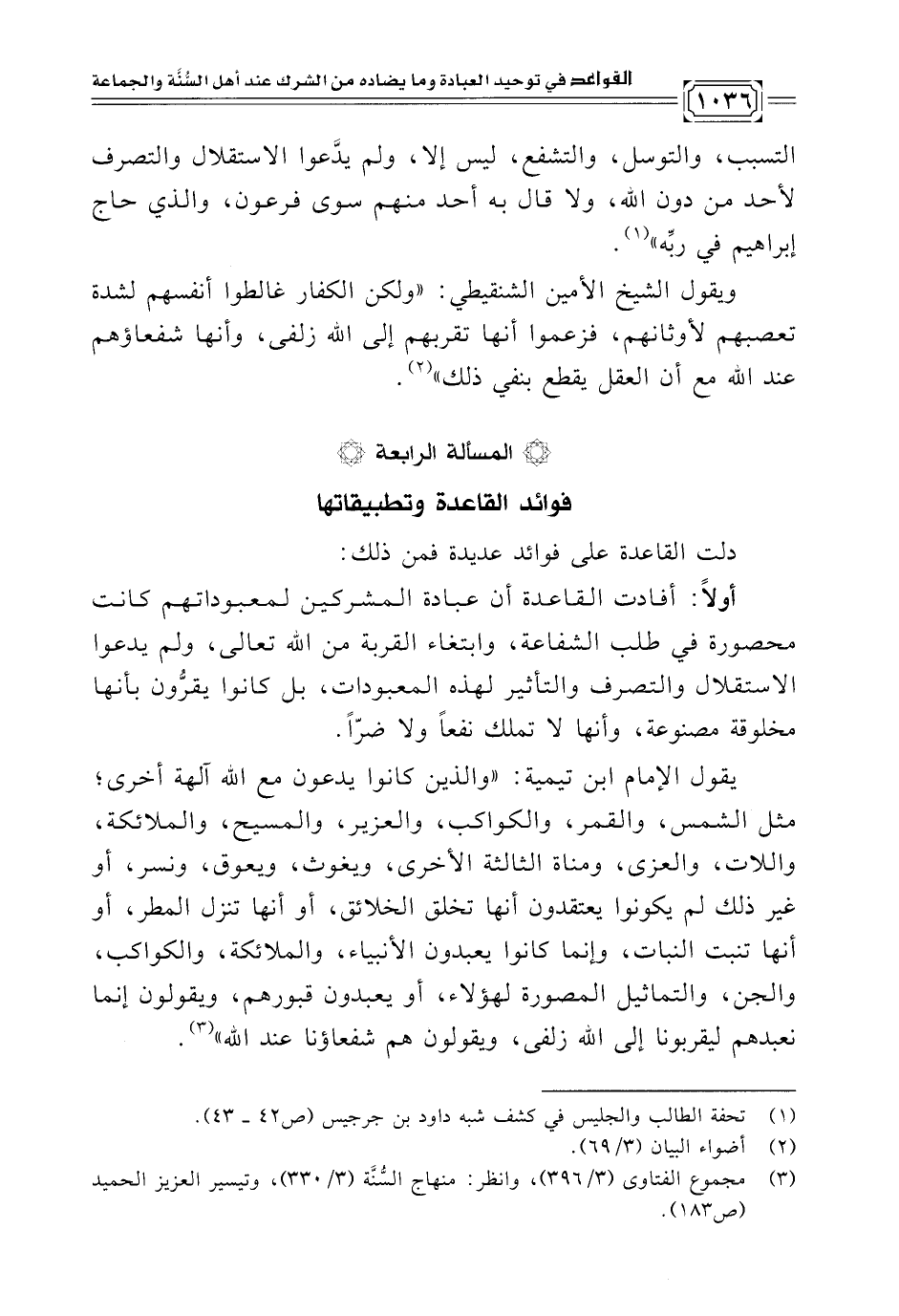* المسألة الرابعة * فوائد القاعدة وتطبيقاتها