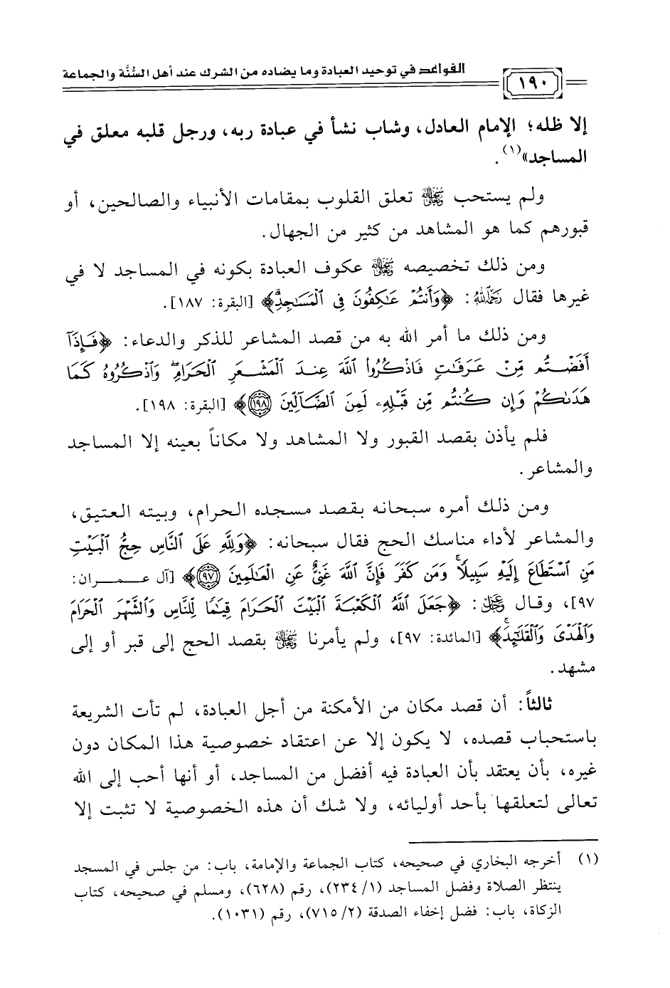 (¬١) أخرجه البخاري في صحيحه، كتاب الجماعة والإمامة، باب: من جلس في المسجد ينتظر الصلاة وفضل المساجد (١/ ٢٣٤)، رقم (٦٢٨)، ومسلم في صحيحه، كتاب الزكاة، باب: فضل إخفاء الصدقة (٢/ ٧١٥)، رقم (١٠٣١).