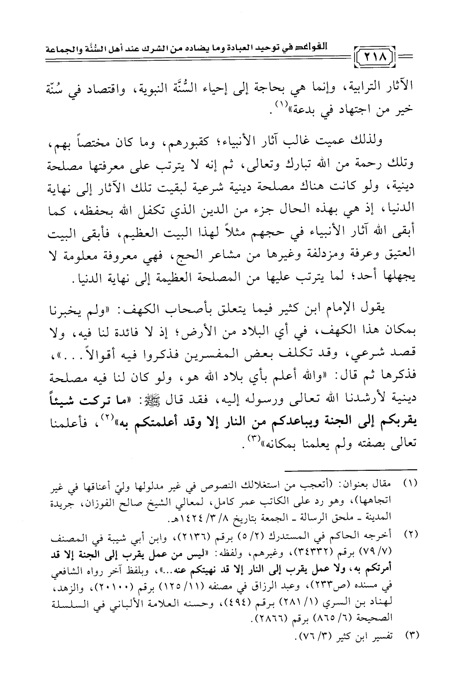 الآثار الترابية، وإنما هي بحاجة إلى إحياء السُّنَّة النبوية، واقتصاد في سُنّة خير من اجتهاد في بدعة" (¬١).