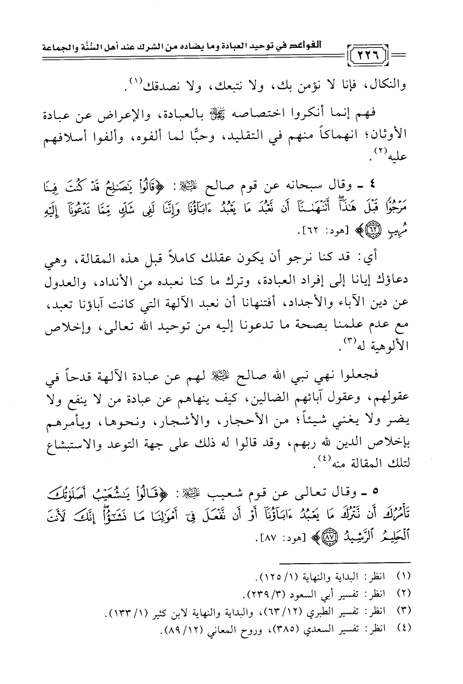٥ - وقال تعالى عن قوم شعيب - عليه السلام -: {قَالُوا يَاشُعَيْبُ أَصَلَاتُكَ تَأْمُرُكَ أَنْ نَتْرُكَ مَا يَعْبُدُ آبَاؤُنَا أَوْ أَنْ نَفْعَلَ فِي أَمْوَالِنَا مَا نَشَاءُ إِنَّكَ لَأَنْتَ الْحَلِيمُ الرَّشِيدُ (٨٧)} [هود: ٨٧].