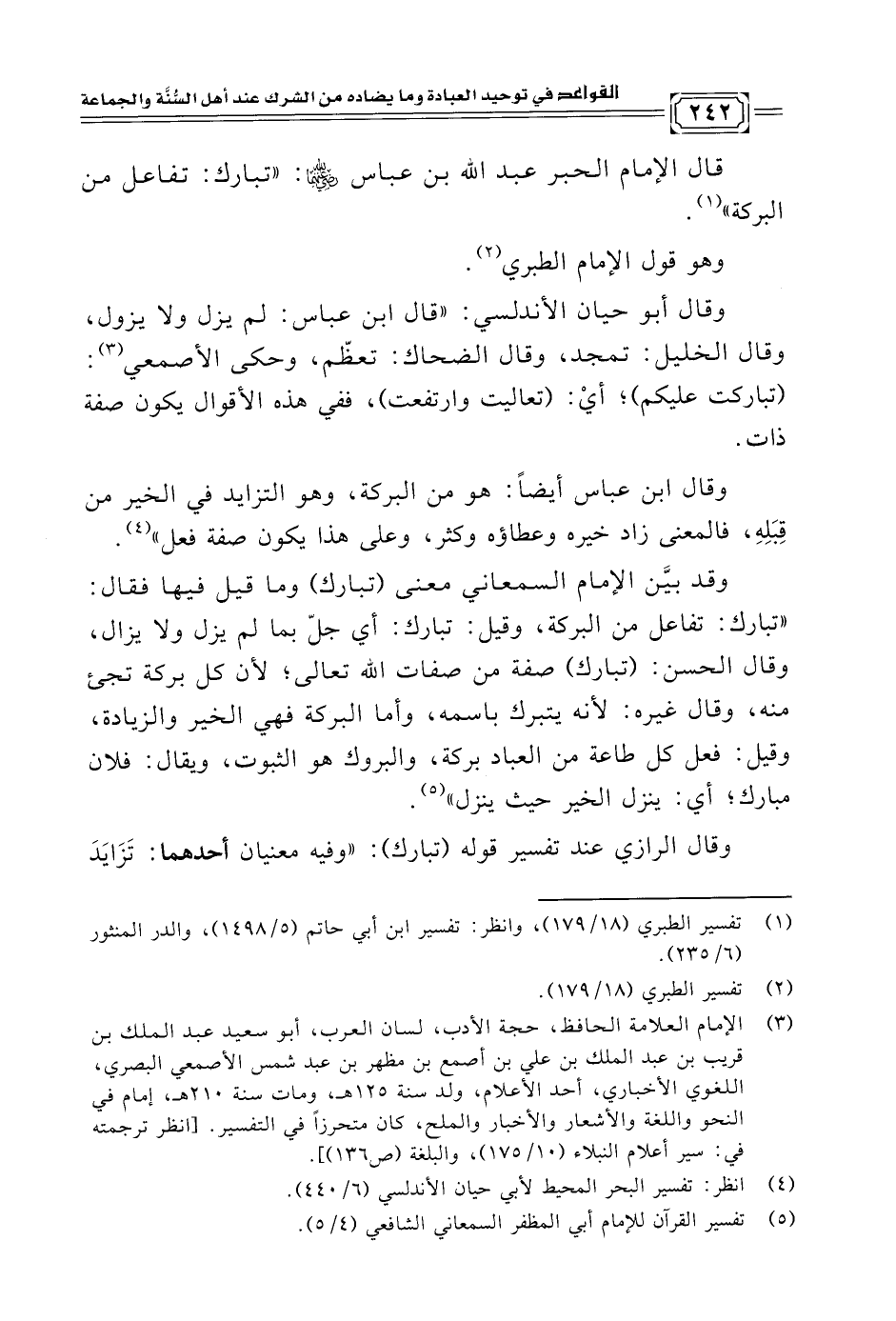 قال الإمام الحبر عبد الله بن عباس -رضي الله عنهما-: "تبارك: تفاعل من البركة" (¬١).