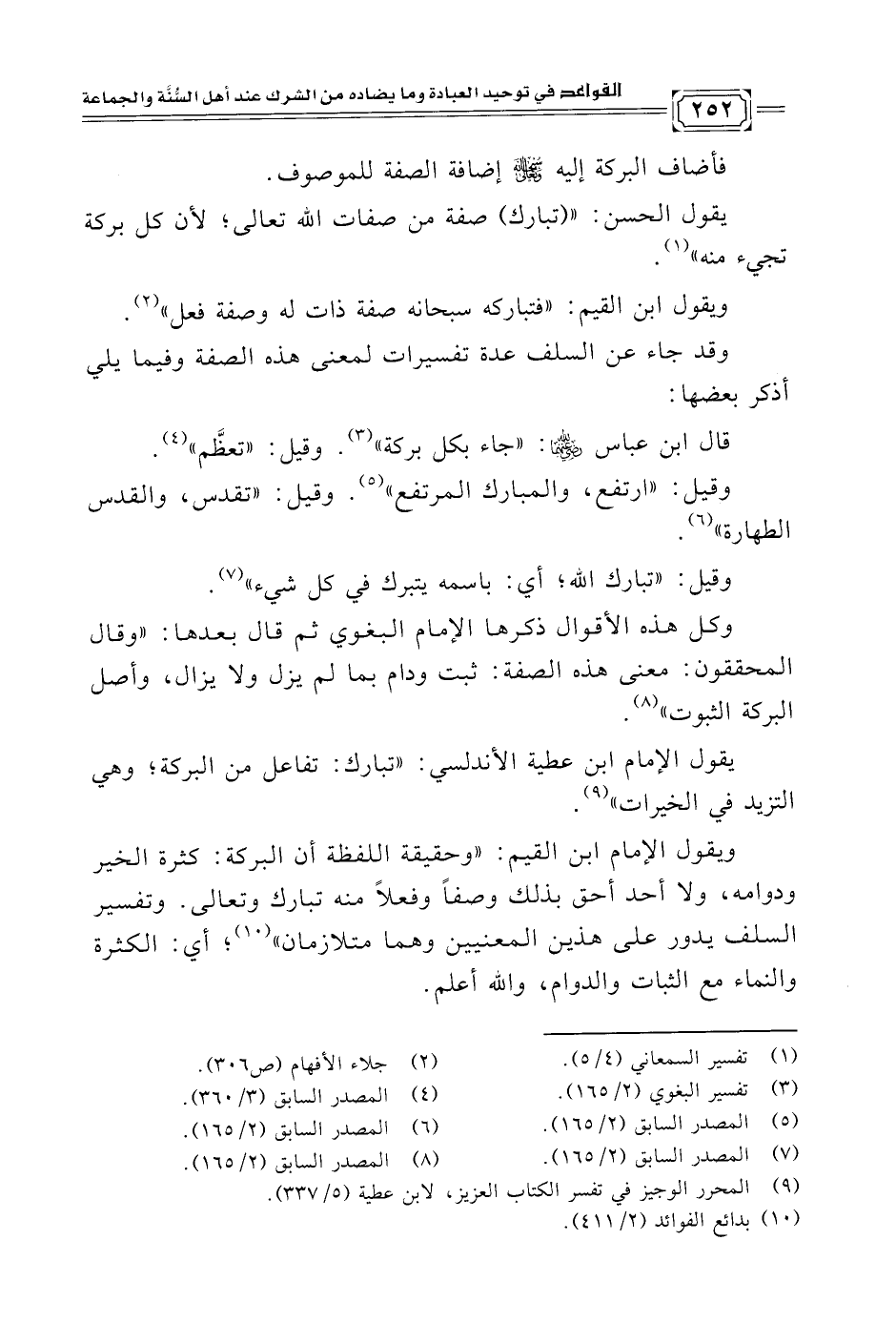 وكل هذه الأقوال ذكرها الإمام البغوي ثم قال بعدها: "وقال المحققون: معنى هذه الصفة: ثبت ودام بما لم يزل ولا يزال، وأصل البركة الثبوت" (¬٨).