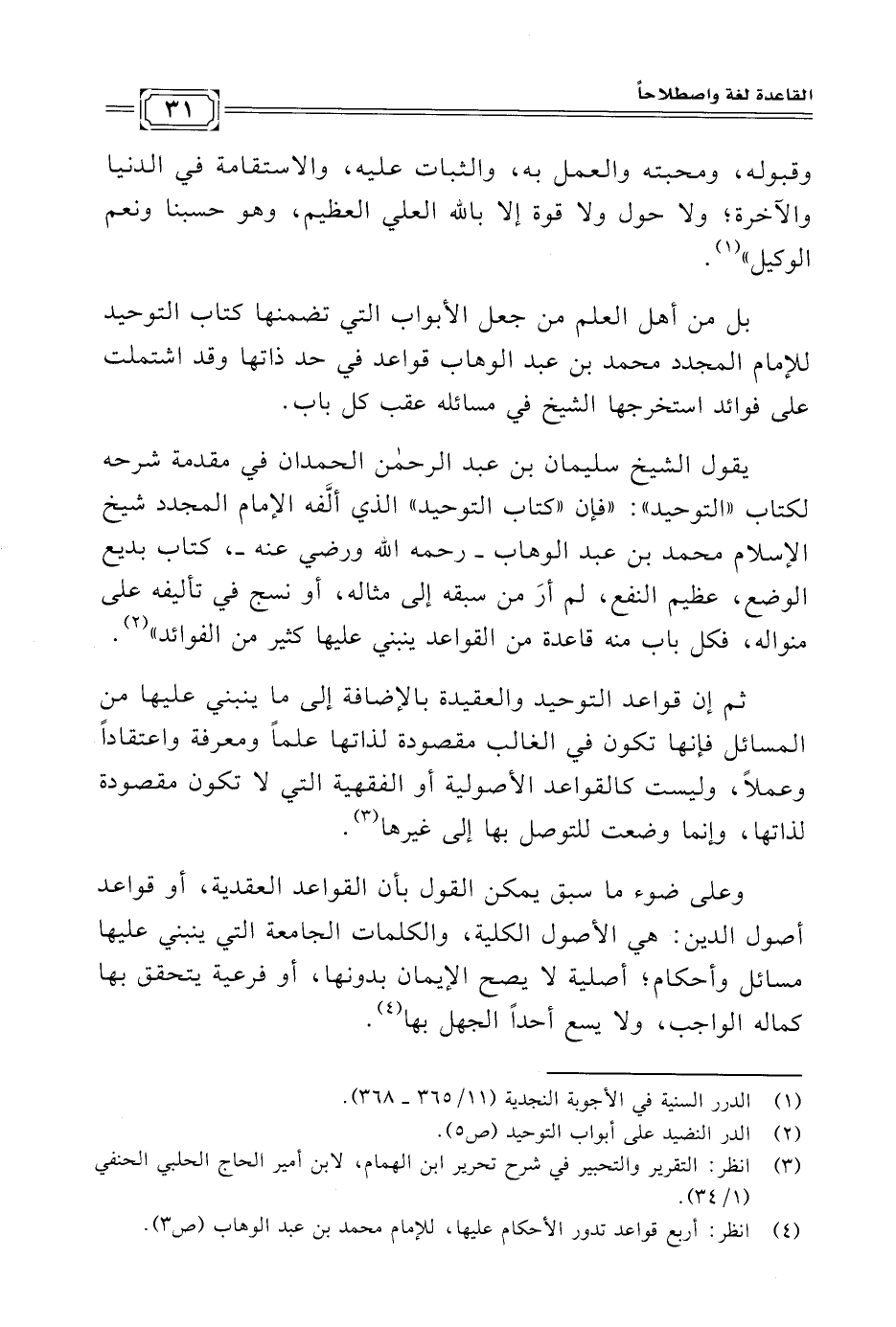 (¬٤) انظر: أربع قواعد تدور الأحكام عليها، للإمام محمد بن عبد الوهاب (ص ٣).