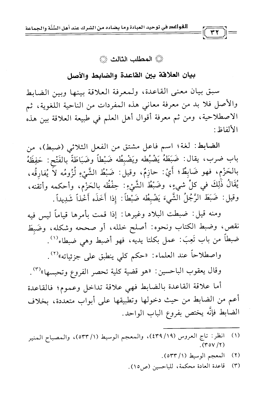 * المطلب الثالث * بيان العلاقة بين القاعدة والضابط والأصل