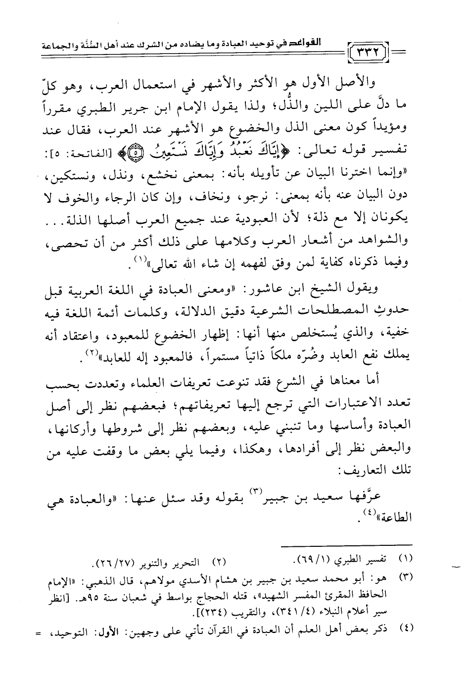 عرَّفها سعيد بن جبير (¬٣) بقوله وقد سئل عنها: "والعبادة هى الطاعة" (¬٤)