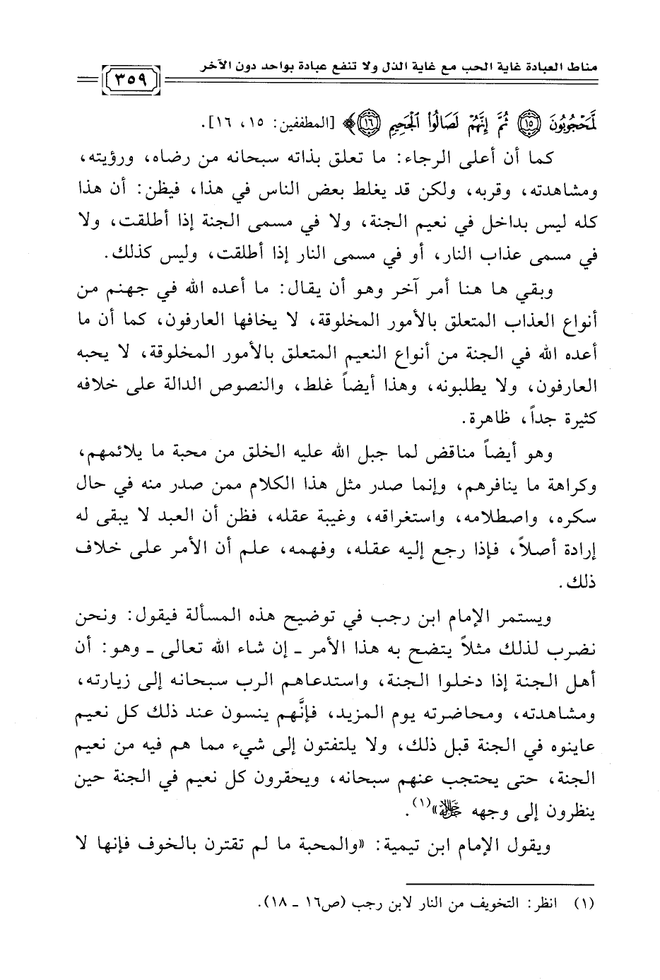 ويقول الإمام ابن تيمية: "والمحبة ما لم تقترن بالخوف فإنها لا